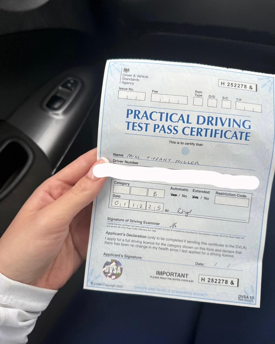 Congratulations on passing your driving test FIRST ATTEMPT at Chester Driving test centre